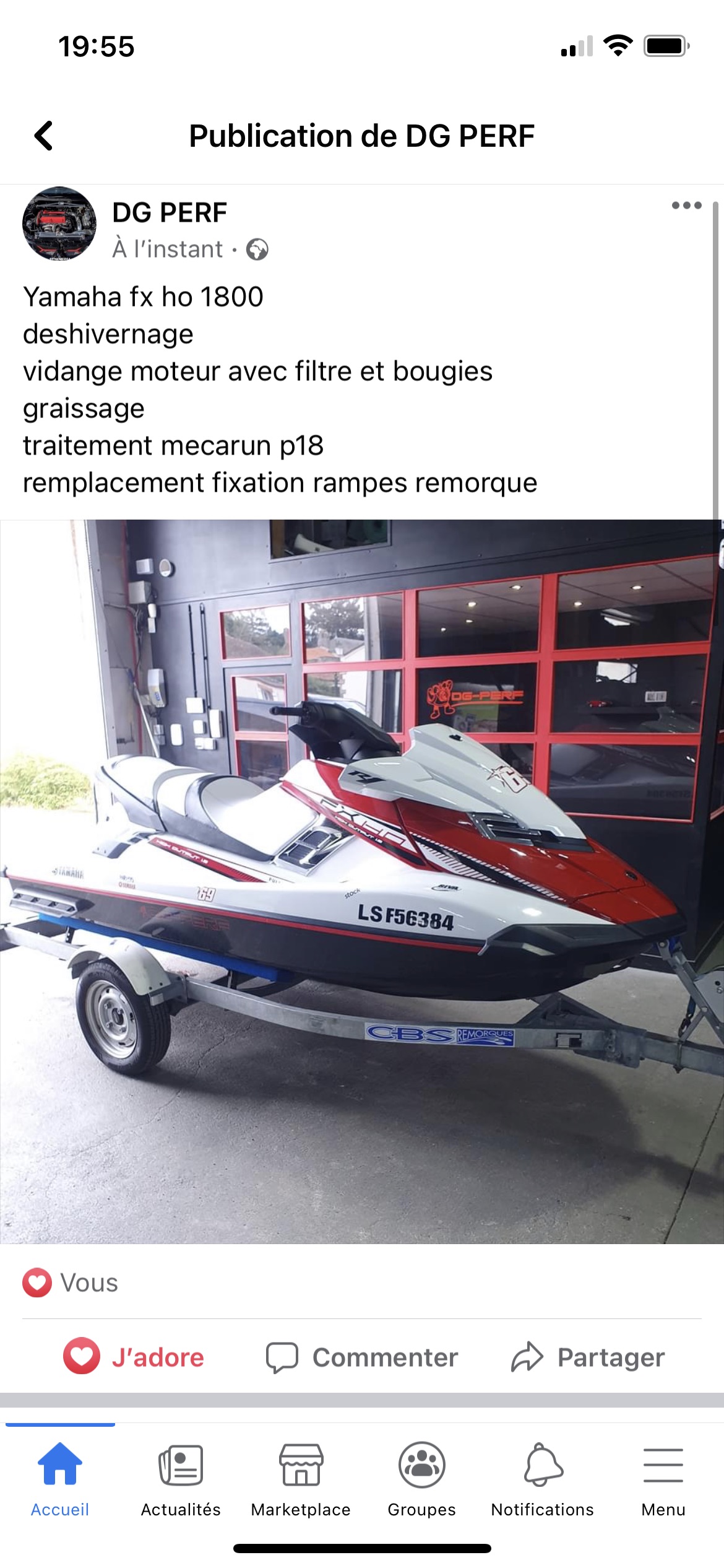 On m’a recommandé DG Perf pour mon Seadoo RXT 215. Un accueil au top et un diagnostic minutieux pour la prise en charge . Une révision complète et un graissage des éléments indispensables… au top. A la récupération de mon jouet un bilan précis de ce qui a été fait avec une vision à un an des pièces d usure a surveiller. Une révision impeccable qui me permet d envisager sereinement la saison à venir. Un garage de passionnés de la mécanique… Encore merci et @ bientôt