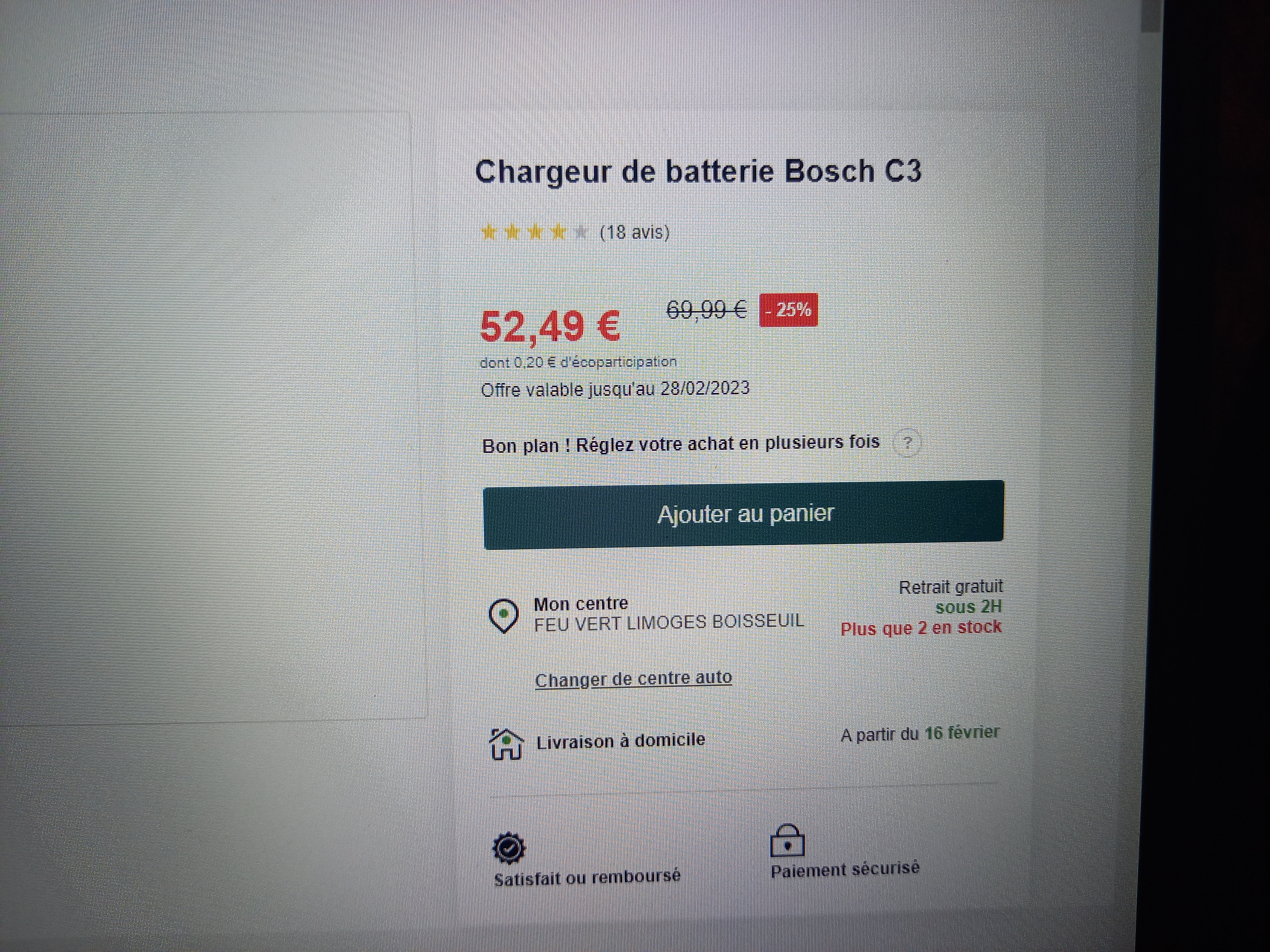 Très déçu du magasin, il affiche un tarif en ligne voir photo arrivé à la caisse 69€ aucun compromis avec le vendeur et de plus pas du tout commerçant. Etant sur place je l'ai quand même acheté. des amis nous avaient a dit qu'il avait eu des problème avec leur atelier, je pense que la magasin est pareil. enseigne pas sérieux